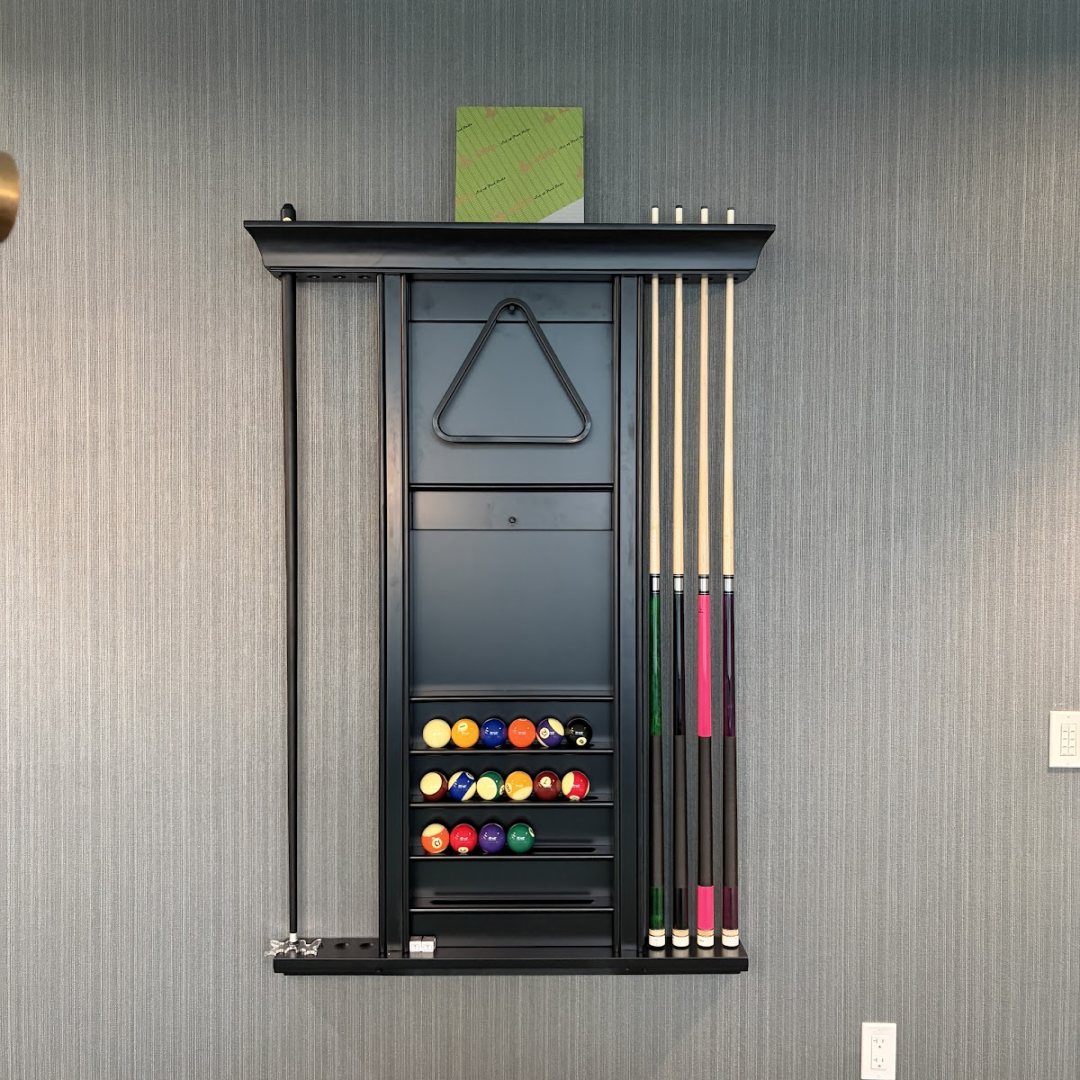 Black Finish 8 Pool Cue Billiard Wall Rack