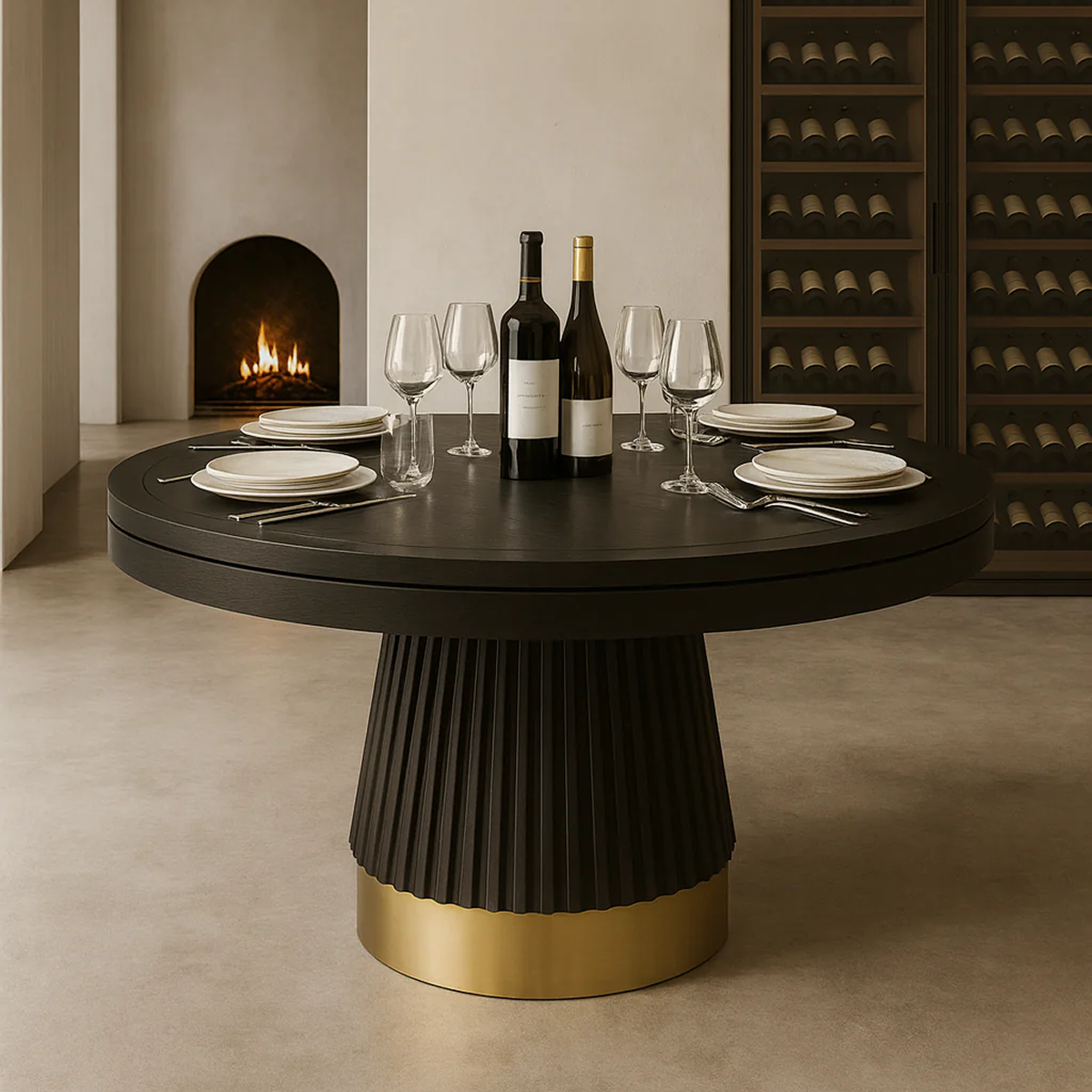 The base is thoughtfully designed with your choice between a cladded matte-black wood pedestal accented by a vintage brass kick plate, or a warm light-walnut finish paired with matte-black kick plate. Each option creates a perfect balance of classic sophistication and contemporary appeal.