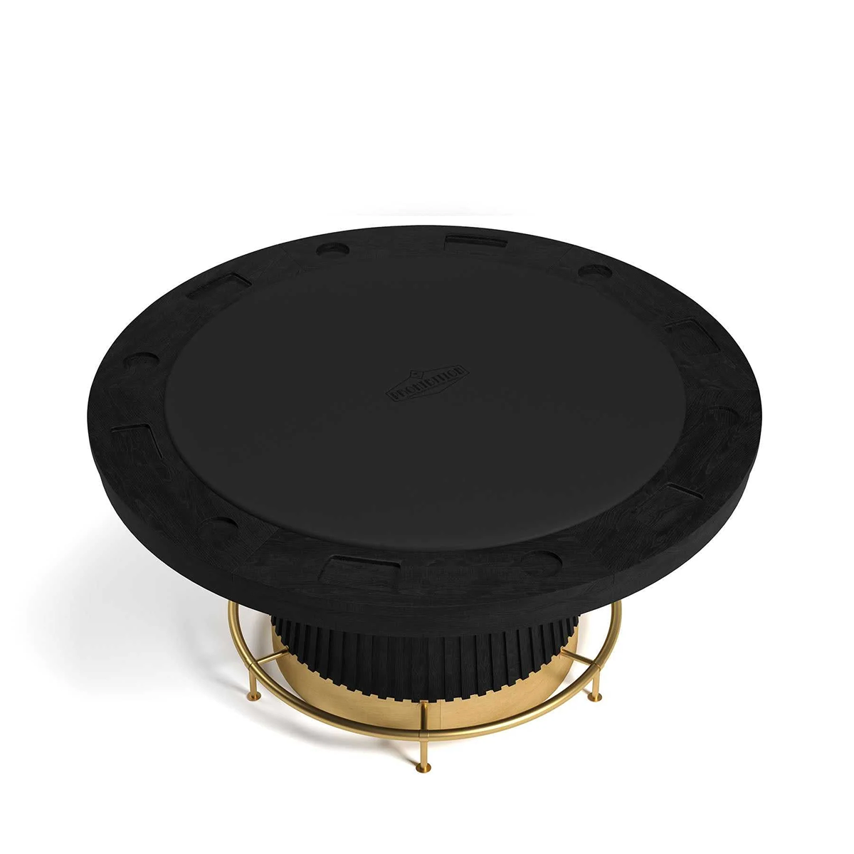 The table’s sleek design, reminiscent of the opulent Art Deco era, adds a touch of timeless sophistication to any game room. Featuring a vinyl playing surface with the branded logo embossed, players can enjoy their gaming experience ensuring hours of entertainment in impeccable style. This exquisite table combines classic sophistication with modern functionality, featuring a cladded matte black wood base accented by a vintage brass kick plate or light walnut with matte black accents, for a touch of timeless elegance.